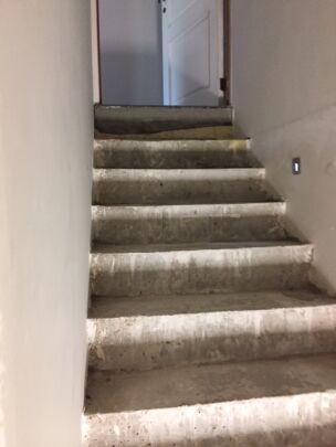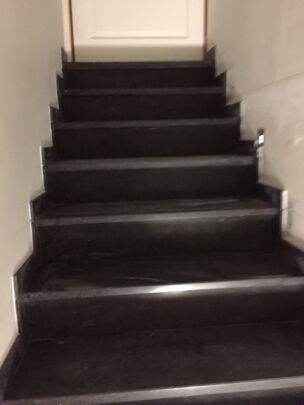 Bekleden betontrap met donker verzoete blauwe steen