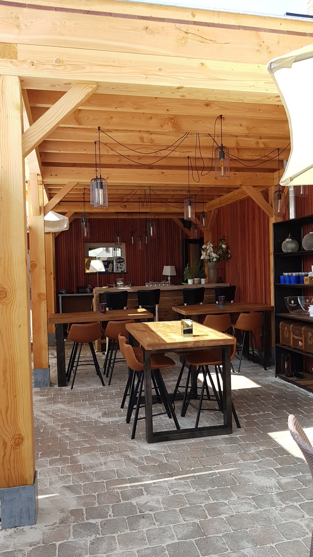 Ons terras met plat dak is volledig naar onze wensen gebouwd! Het is een meerwaarde voor de zaak (restaurant) !
