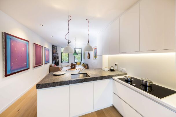 ons opkomt bij het zien van deze realisatie? Chic! Het robuuste keukenblad in